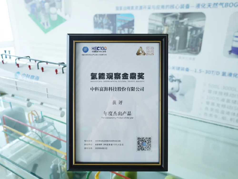 4月22日,CHEC2025第五屆世紀(jì)氫能與燃料電池大會(huì)在上海圓滿結(jié)束。會(huì)議以“聚焦氫未來(lái),助力碳中和”為主題,旨在打通氫能產(chǎn)業(yè)各環(huán)節(jié),推動(dòng)產(chǎn)業(yè)鏈發(fā)展。會(huì)議現(xiàn)場(chǎng)揭曉2025氫能觀察“金鼎獎(jiǎng)”名單,中科富海憑借在氫能領(lǐng)域的產(chǎn)品創(chuàng)新研發(fā)和產(chǎn)品應(yīng)用示范等方面的實(shí)踐成果,榮獲“金鼎獎(jiǎng)·年度杰出產(chǎn)品”獎(jiǎng)。氫能產(chǎn)業(yè)“金鼎獎(jiǎng)”是...